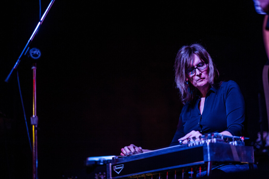 Also, we started to talk a little bit early on and she started to explain certain things about the instrument and about writing for the instrument and how different it really was. I didn’t really understand it; I think I was probably more exposed to slide guitar and lap steel and things like that. In my musical world, pedal steel didn’t exist that much, although I knew it from all those great introductions from country songs. Every time I would see her or hear her play, I was … blown away, not even totally understanding how she’s doing what she’s doing….
